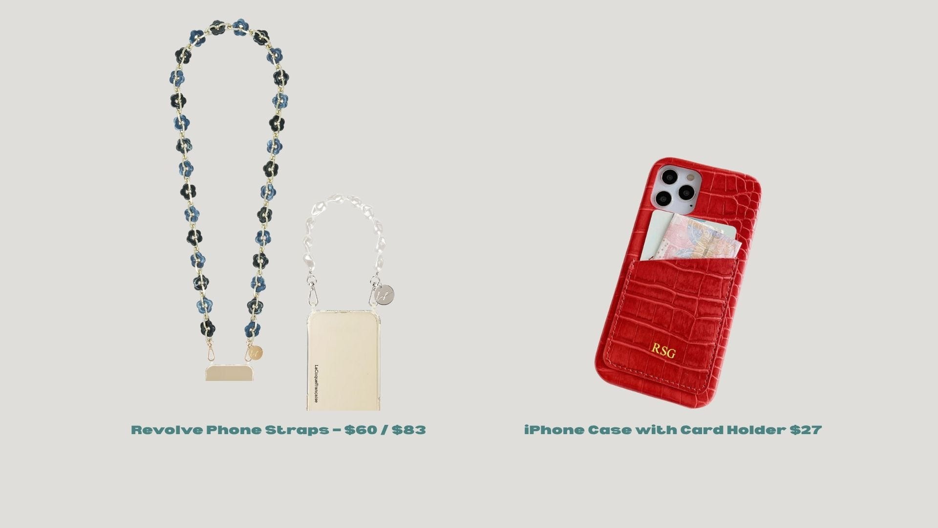 Phone Accessories: Phone straps don’t need to be an eye sore when traveling - I love this one and this one. Also a wallet for the back of the phone like this Apple attachable one or this case.