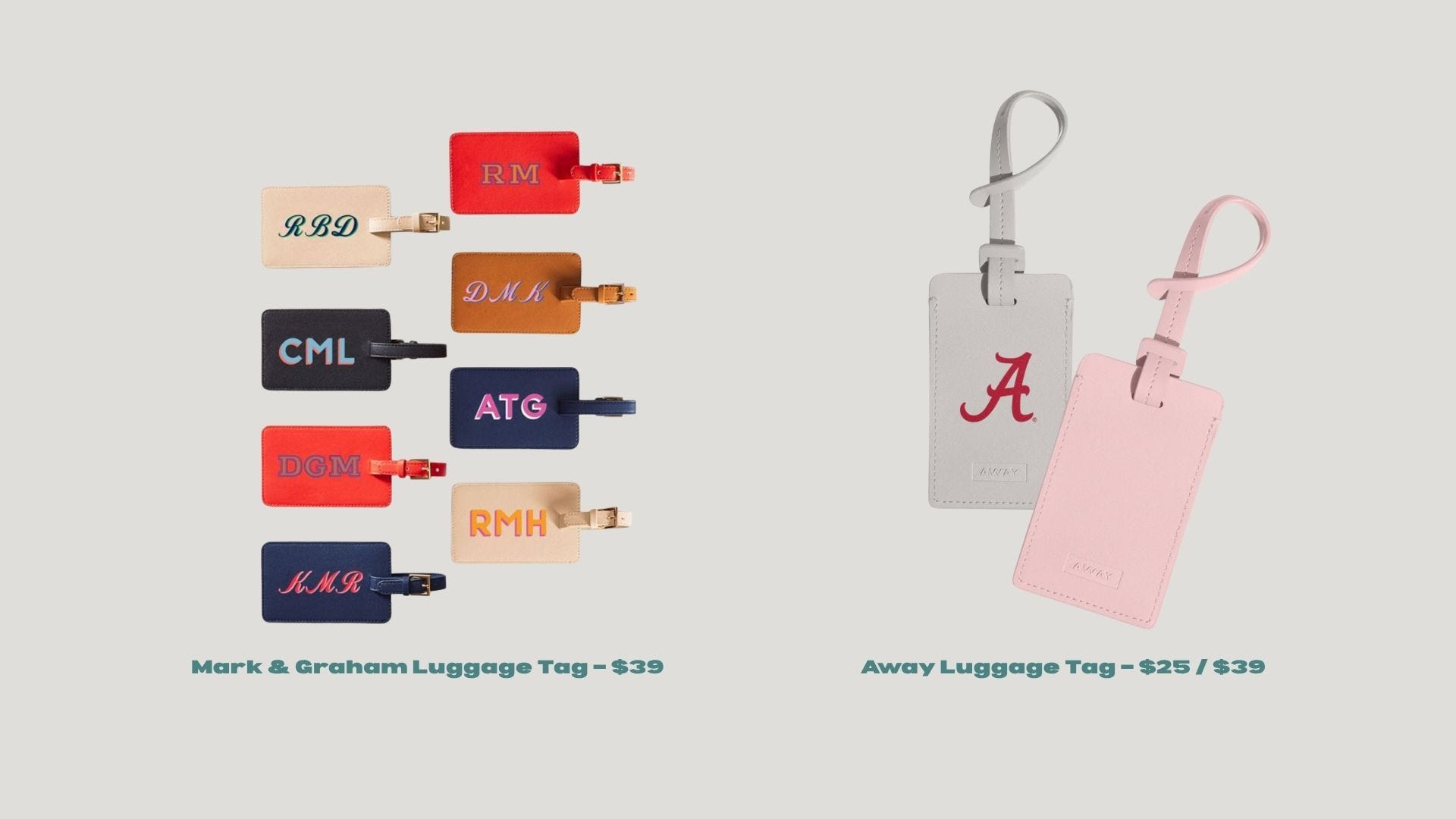 Luggage Tag: So many fun options like this one from Mark & Graham. Away also came out with collegiate branded ones and of course I have my eye on this Alabama one.