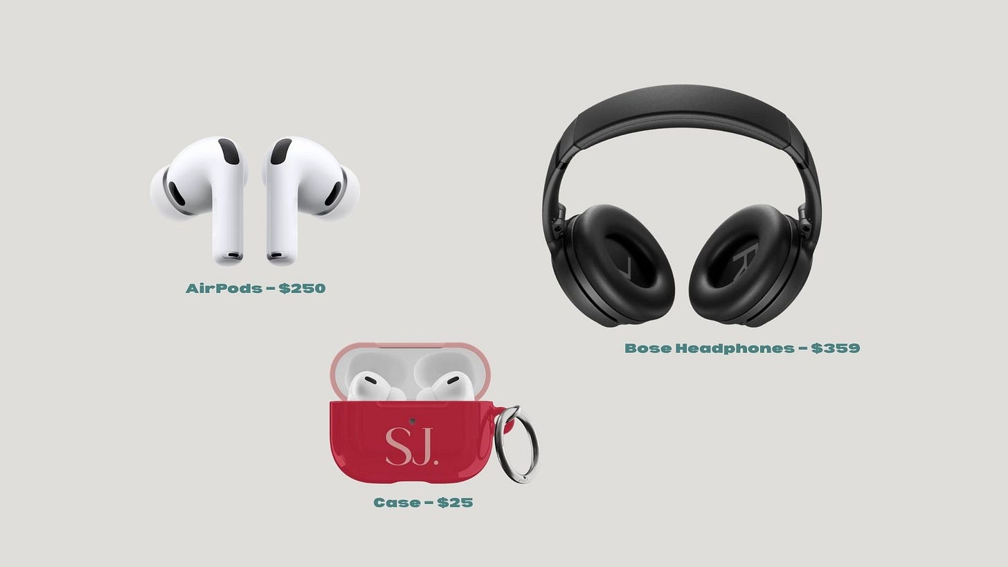 Headphones: Noise cancelling headphones for a flight are such a game changer. I love my Airpods but my parents prefer the Bose over the ear ones. A personalized Airpod case like this is also a great gift.