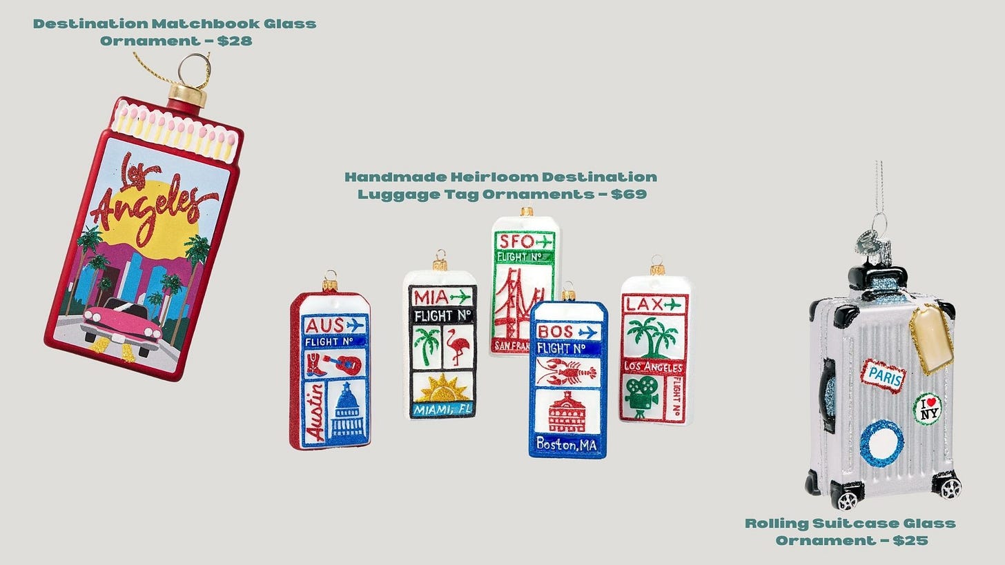Ornaments: Such a fun souvenir to collect and gift, our family tree is strictly travel ornaments at this point and I love it. Anthropologie has a new matchbook destination collection with a ton of places to choose from. Also check out this Pottery Barn set and this from Nordstrom.